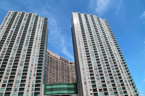 - Commercial condo policy (BLUE IN THE PICTURE BELOW): Protects condo building itself, including common areas located both inside and outside of the condo building. Examples of such areas are shared hallways, entrance/foyer area, swimming pool, gym, elevators, roof, etc. It also protects residents in cases such as falling condo glass, which is not a rare thing in large cities.